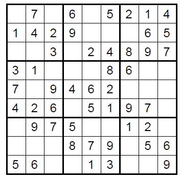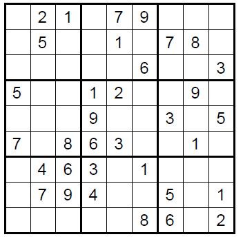 Vul de sudoku in door in elk blokje een cijfer van 1 tot en met 9 te schrijven. Let op: in elke rij, kolom en 3x3blok mag elk cijfer maar één keer voorkomen!