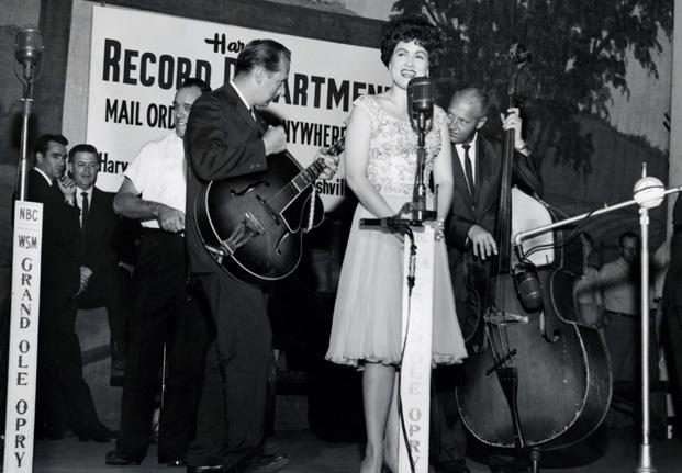 Alton (r) on the stage at the Opry in 1935.• Patsy Cline on the Opry stage in May