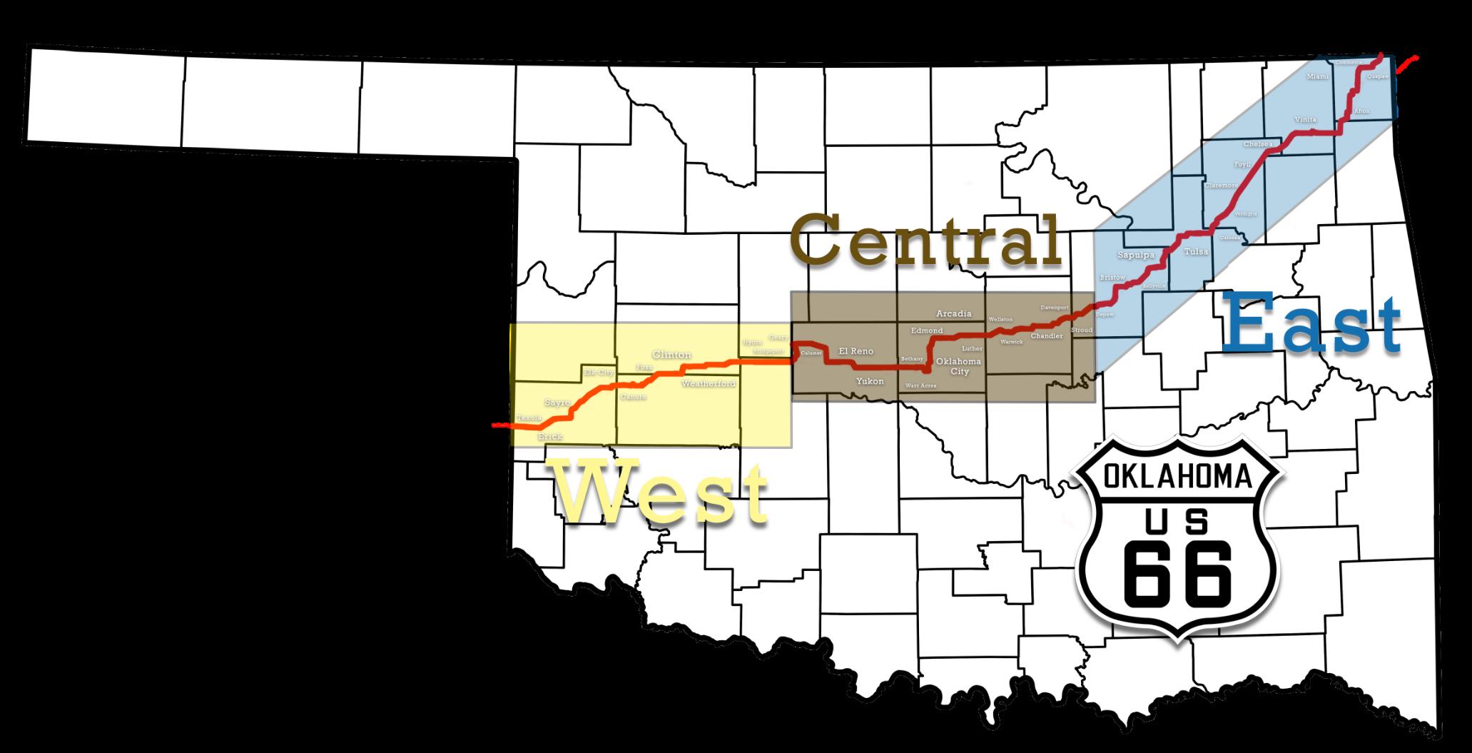 What you are holding is a county-by-county layout of Route 66 through Oklahoma. Each section contains maps, directions, tourist attractions, town overviews, and more. Throughout its history, Route 66 has been an engine of westward exploration; tourists today frequently follow the same east-to-west path when searching for the old highway. This guide is laid out accordingly. We have tried to be as accurate as possible, but