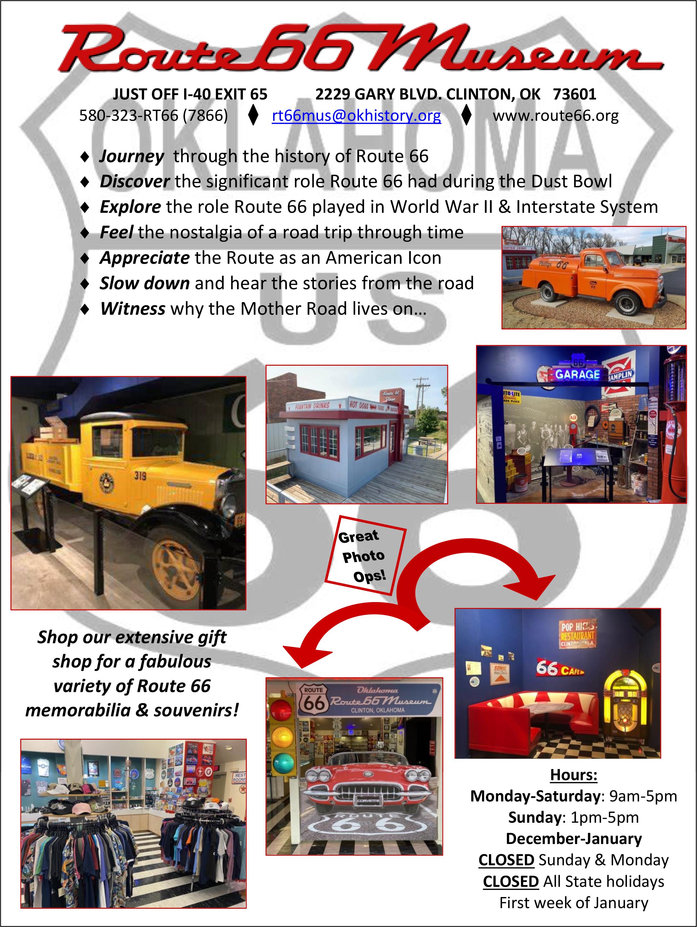 For additional information about Oklahoma Route 66 and upcoming events, contact us! We are always happy to assist travelers.