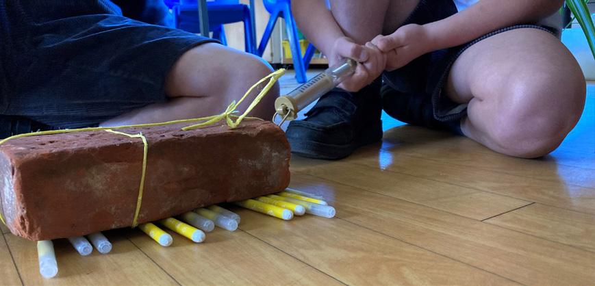 Year 6 learned about forces in Science, conducting an experiment outside and measuring the results.
