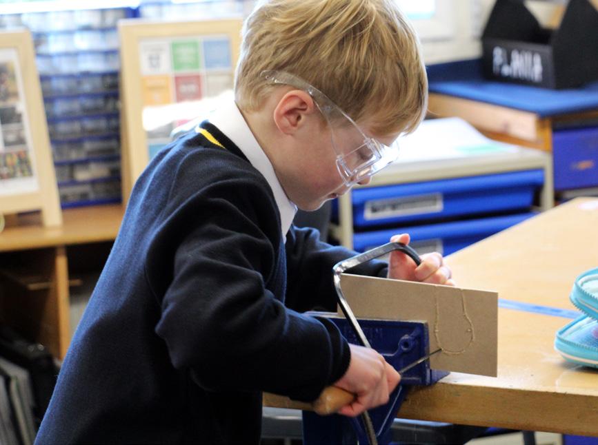 In DT, Year 3 got to grips with using new tools like coping saws safely.
