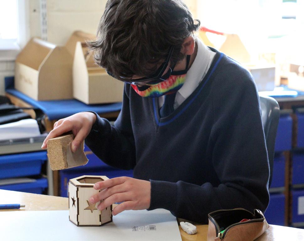Year 7 worked on developing and decorating their clay masks in Art. Year 6 put their engineering skills to the test by making and racing toy cars in DT.