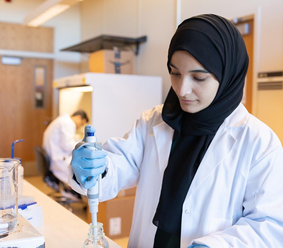 In the lab, they conduct research on the virulence of the multidrug-resistant bacterial pathogen Pseudomonas aeruginosa which is the cause of deadly infections, such as those found in patients with cystic fibrosis. Her current project is an exploration of the molecular mechanisms involved with calcium signaling in P. aeruginosa , and the intricate regulation of this process upon interaction of the pathogen with human airway epithelial cells. Maha is implementing genetic engineering and molecular cloning to probe loci within and around the cells and monitoring the levels of Ca2+ using fluorescence. They expect to acquire new knowledge on the intracellular behavior of the pathogen during infection and use it to develop novel therapeutic strategies to treat diseases caused by this pathogen.