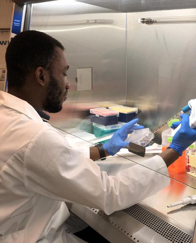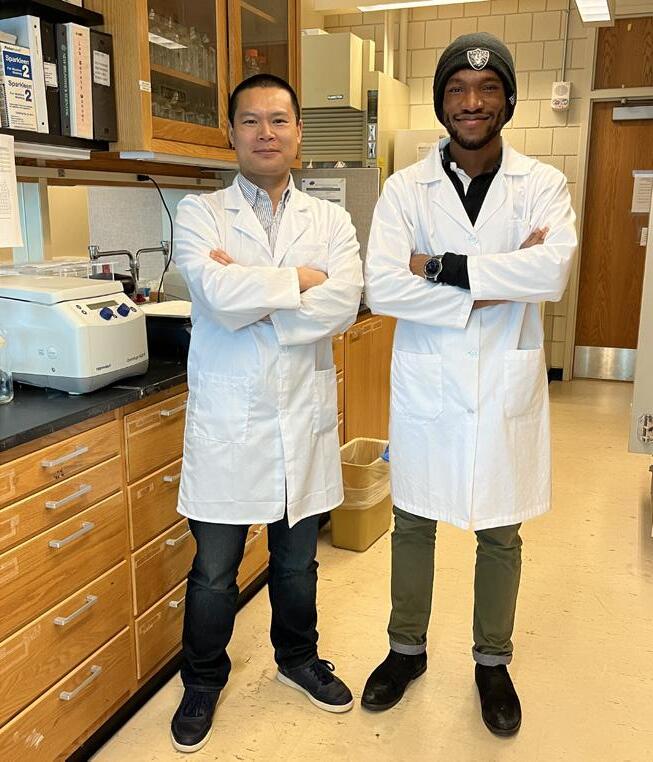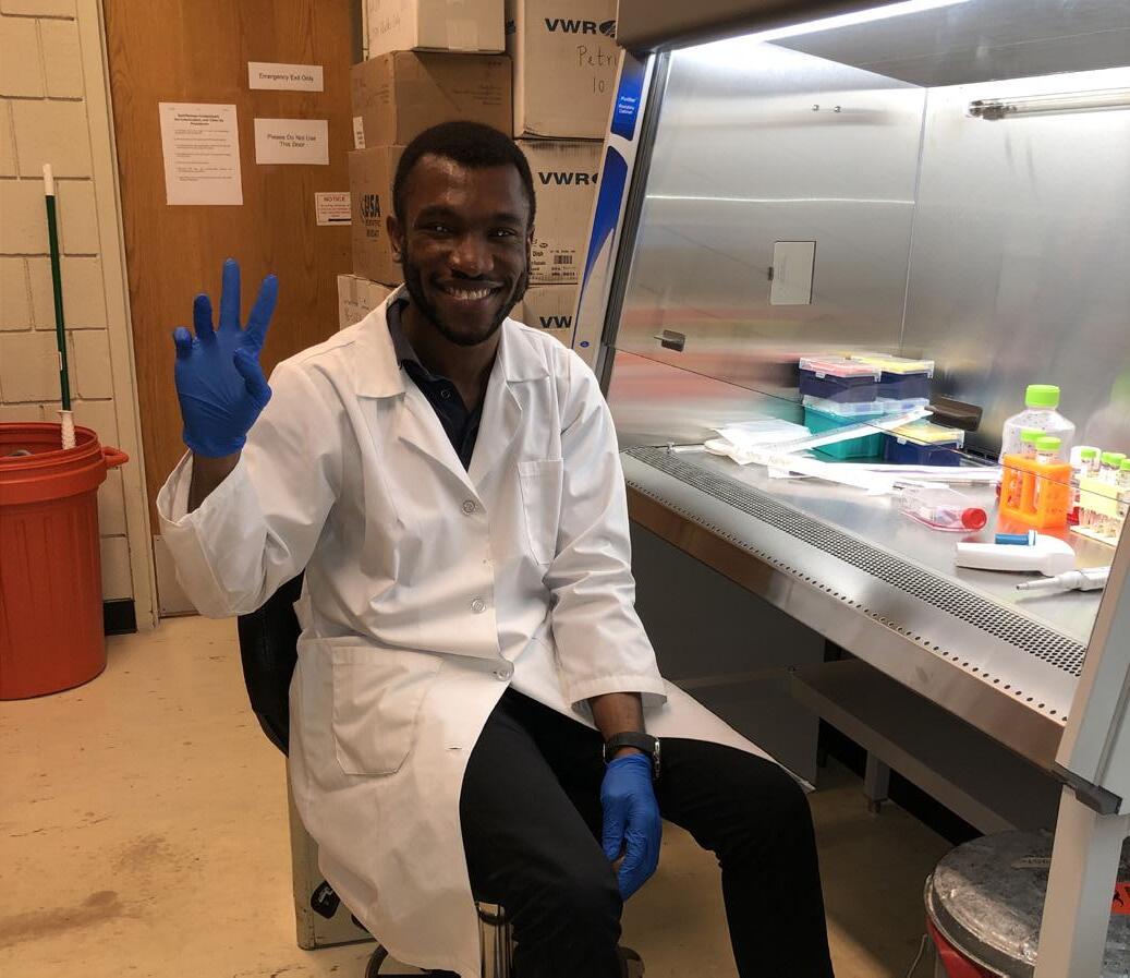 Stephen Kotey is a fourth-year Ph.D. student in the Biochemistry and Molecular Biology Department. Coming from Ghana in Western Africa, Stephen completed his undergraduate degree at the University of Ghana. He is currently working under Dr. Cheng to study the relationship of long non-coding RNAs in macrophages and the disease tuberculosis (often referred to as TB). He is also working to uncover alternative therapies for Mycobacterium tuberculosis infections since this pathogen has become resistant to the drugs used to treat infections caused by this organism.