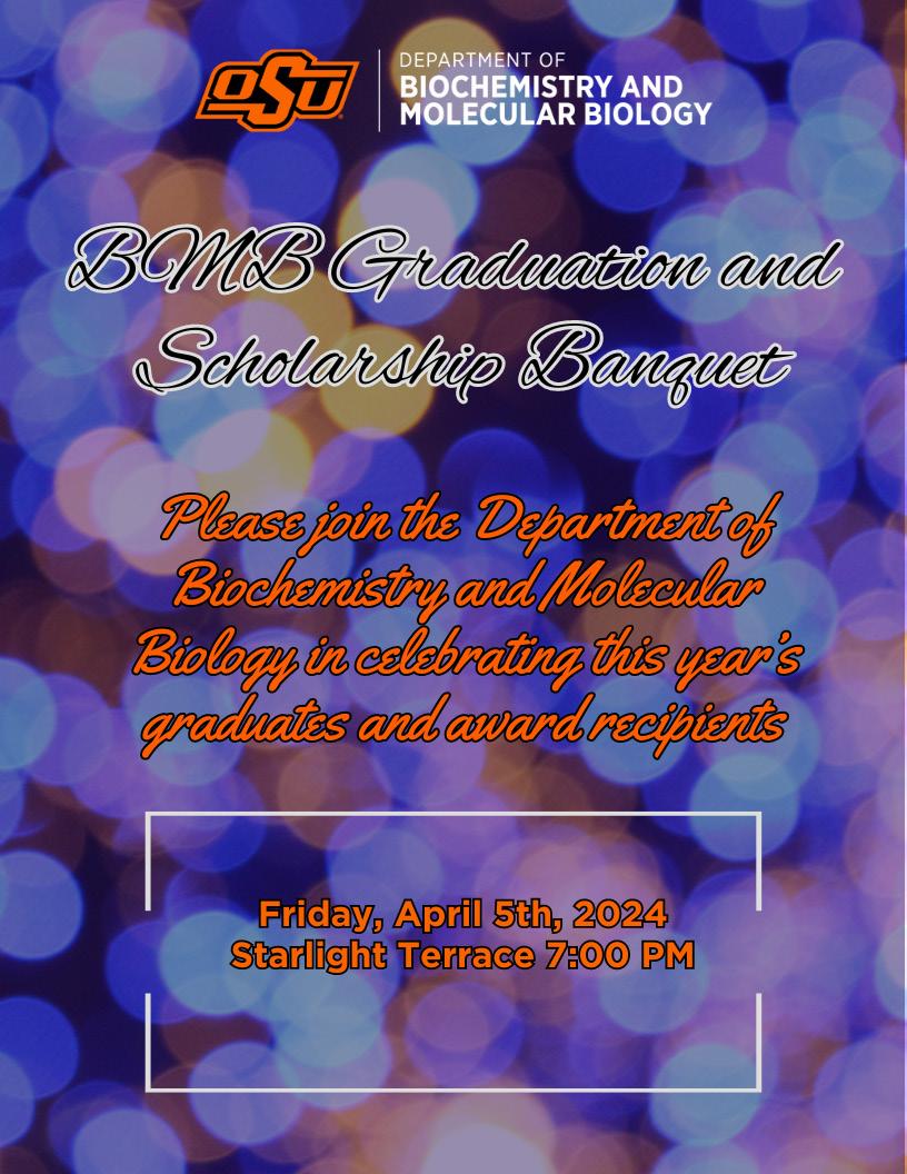 On April 5th we had our BMB Graduation and Scholarship Banquet. With nearly 100 people in attendance, it was our most successful banquet yet. Because of the generosity of our donors, the department was able to provide over $27,000 in scholarships to 51 students. A sincere congratulations goes out to all our student scholarship award winners! We make every effort to recognize our incredible donors and thank them for the financial support they provide our students. Because of these generous donors, next year the department will have a greater amount of funds to award our students! We also thank our incredible office staff members (Ben, David, Shanelle, Catherine and Ashanti) for planning, setting up and making sure this event was a complete success.