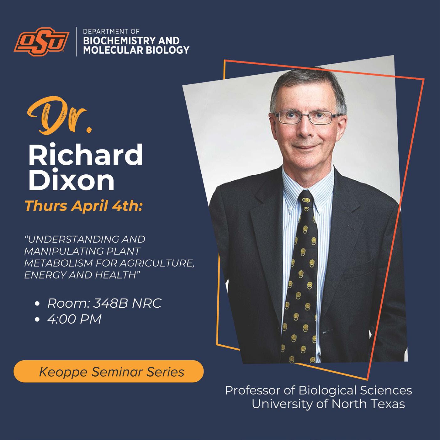 Among being a US National Academy of Sciences Member and Distinguished Research Professor Emeritus of the Department of Biological Sciences at the University of North Texas, Dr. Richard Dixon is an also adjunct member of our department. We were so honored that he found time to provide a seminar in our department, entitled, “Plant cell wall engineering - aims, prospects and problems” on April 4, 2024.