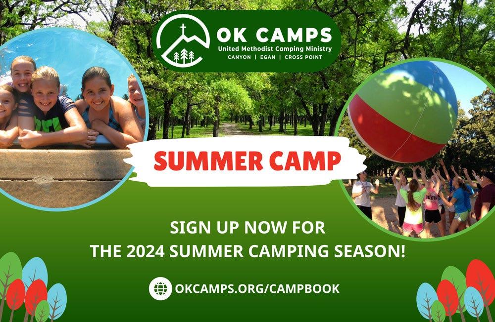 Several United Methodists clergy were part of CJAMM’s annual New Day Camp, the summer camp for children, ages eight to 14, with incarcerated parents. Held June 3-7 at Cross Point Camp, this year’s camp had 60 children and 53 volunteers. TOP LEFT: Bo Ireland, worship leader, OKC The Lazarus Community; Alanna Ireland, worship leader, Saint Paul School of Theology; and Adam Shahan, music leader, Wesley UMC OKC. TOP RIGHT: Pam Pawley Cottrill, bingo leader, Inola UMC with Keith Dobbs CJAMM Executive Director.