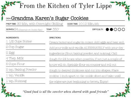 One of my favorite Christmas traditions has always been Grandma Karen’s sugar cookies. Going over to her house and seeing a large stack of Santas, gingerbread men, Christmas trees, and snowflakes all laid out on wax paper was pure joy.