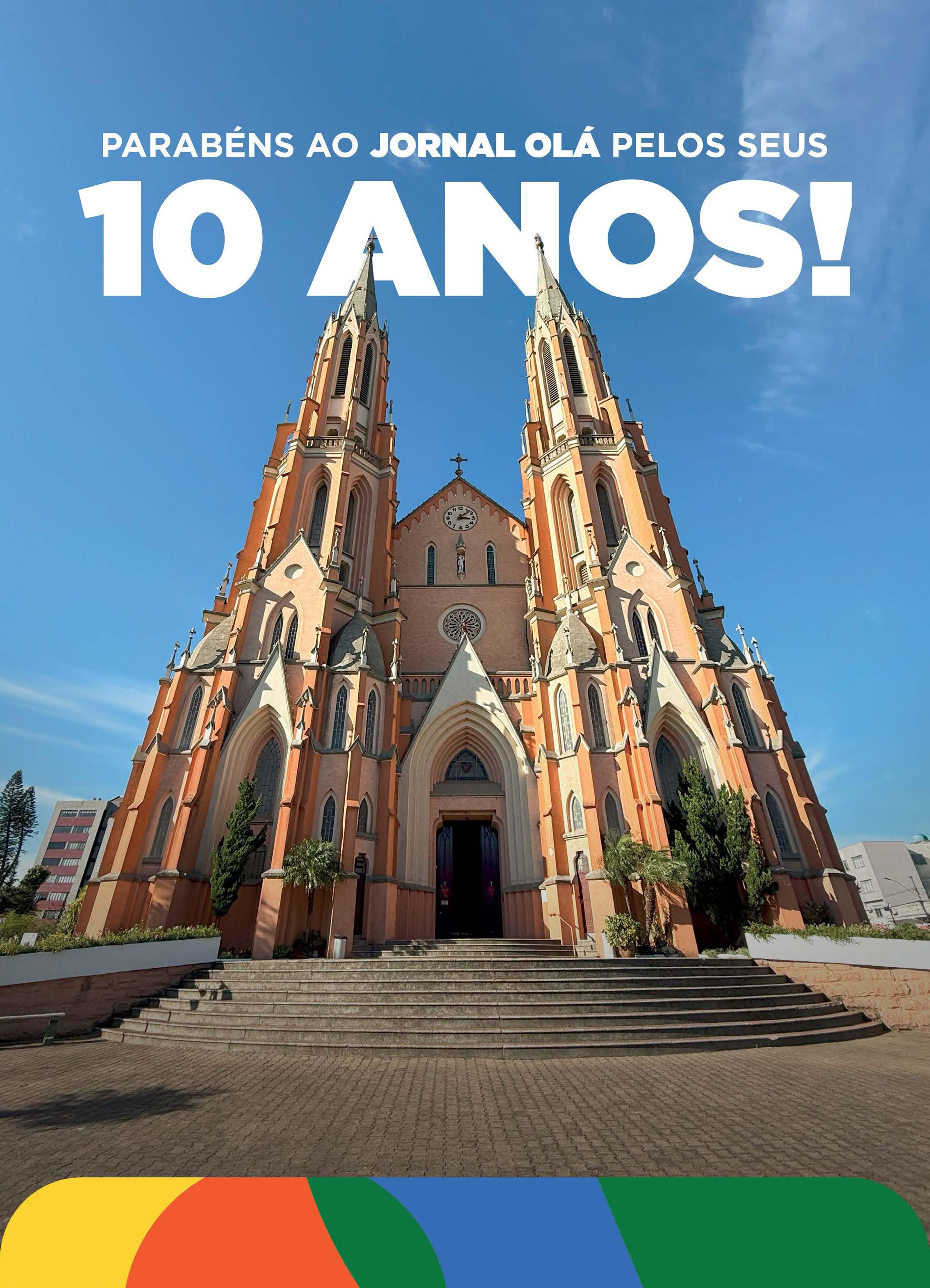 O Olá Jornal completa 10 anos. Fundado em 2015 pelos jornalistas Janine Niedermeyer, Guilherme Siebeneichler e Maicon Niland, nasceu com a proposta de democratizar a informação por meio de um formato regional inovador, gratuito desde a primeira edição. Ao longo desta primeira década o veículo se consolidou pela identidade própria, linguagem leve e criativa. Nesta trajetória realizou nove coberturas internacionais e manteve a parceria local com a Gráfica Treze de Maio. A distribuição gratuita, tanto impressa quanto digital, sempre foi um diferencial, garantindo acesso a todos os públicos. PÁGINAS 7, 8 e 9
