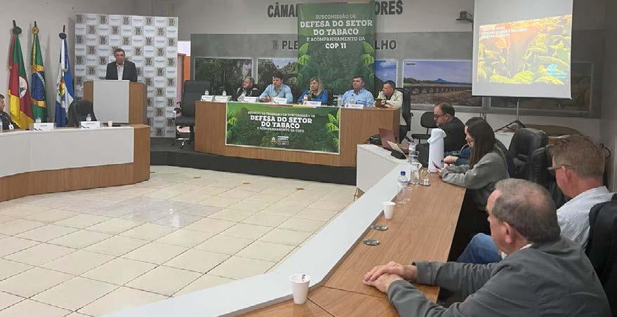 com a apresentação e aprovação do relatório final da Subcomissão. Segundo o deputado estadual Marcus Vinicius, presidente da Subcomissão, a programação visa consolidar encaminhamentos que servirão como base para atuação junto aos governos estadual e federal, bem como para negociações internacionais, especialmente no contexto da COP 11. “São momentos decisivos para definir políticas que fortaleçam a cadeia produtiva do tabaco e garantam o futuro da agricultura familiar no Rio Grande do Sul”, afirma. A reunião de Candelária contou com a presença do secretário estadual da Agricultura, Edivilson Brum, dos deputados Marcelo Moraes e Kelly Moraes, do presidente da Amprotabaco, Gilson Becker, além de lideranças regionais, produtores e