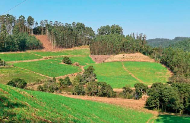 1,2 hectares, equivalente a 8% da propriedade média com cultivo de tabaco, que soma 14,6 hectares totais. Juntas, essas áreas chegam a 22,7% da extensão total, um índice superior ao destinado a pastagens, que representam 17,1%, e próximo a um quarto de toda a área disponível. O reflorestamento é utilizado principalmente como fonte de lenha para a cura do tabaco, enquanto a mata nativa permanece preservada em conformidade com a legislação ambiental.