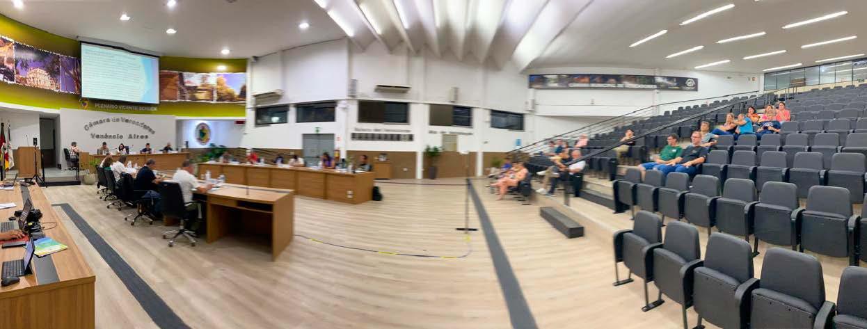 A Câmara de Vereadores de Venâncio Aires realizou na noite desta segunda-feira, 04, a primeira sessão ordinária do plenário Vicente Schuck, reformado após as enchentes de maio. Durante o encontro semanal os parlamentares analisaram cinco projetos na pauta de votações. Entre as matérias colocadas em votação, a Lei de Diretrizes Orçamentárias (LDO) de 2025 teve destaque. O texto lista os projetos, programas e ações para o próximo ano, além da previsão de despesas e receitas. A projeção para 2025 é de R$ 440 milhões em receitas públicas. Para emendas impositivas dos legisladores estão reservados R$ 8 milhões. Venâncio Aires possui atualmente 14 secretarias municipais e para o próximo ano estão previstas também a execução de 450 iniciativas no orçamento. O Fundo de Previdência conta com R$ 47 milhões. Uma emenda à LDO foi proposta