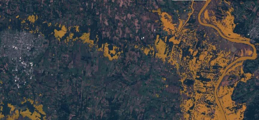 as áreas inundadas da região da Bacia Hidrográfica do Lago Guaíba para obter a área diretamente afetada. A partir disso, essa mancha foi cruzada com dados do Censo IBGE 2022 para estimar população e domicílios afetados; dados do MapBiomas para estimativa de áreas urbanas afetadas; dados de prédios do Google e altura de prédios da GHSL-H (JRC Comissão Europeia) para estimativa de número de edifícios afetados e área construída afetada; com dados do Open Street Maps para estimativa de vias afetadas. Este repositório foi desenvolvido por diversos setores da UFRGS e oferece modelos de previsão de elevação do nível d’água, mapeamento de áreas afetadas pelas inundações e produção de informações críticas no enfrentamento da crise das cheias de maio de 2024 no Rio Grande do Sul.