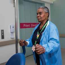 hospital. He worked for UPS for 15 years and was also a member of a very strong union – the Teamsters. I wear my Delegate’s badge all the time, which has a QR code on it, that I use to sign up members whenever I can. My tote bag is a union bag, and I always have an 1199 welcome pack on me. I try to catch my co-workers as they are leaving their shifts.