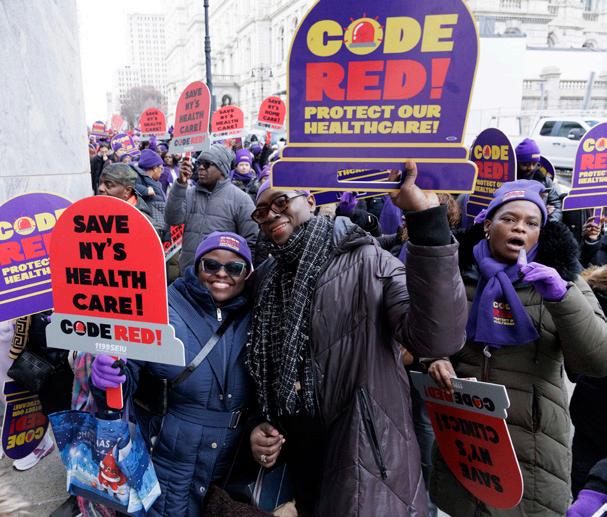 Thousands of 1199 members boarded buses from Buffalo, Plattsburgh, Long Island and everywhere in between to make their voices heard on January 12 in Albany, the New York State capital. Facing unprecedented federal healthcare cuts, members declared a “Code Red” for vital healthcare services for vulnerable New Yorkers—demanding that state lawmakers plug the gap.
