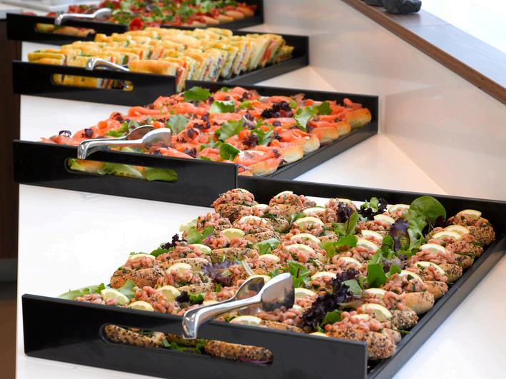 Café,théetinfusions,jusd’orangefrais,barresdecéréales,découpesde fruitsfrais,mignardises.
