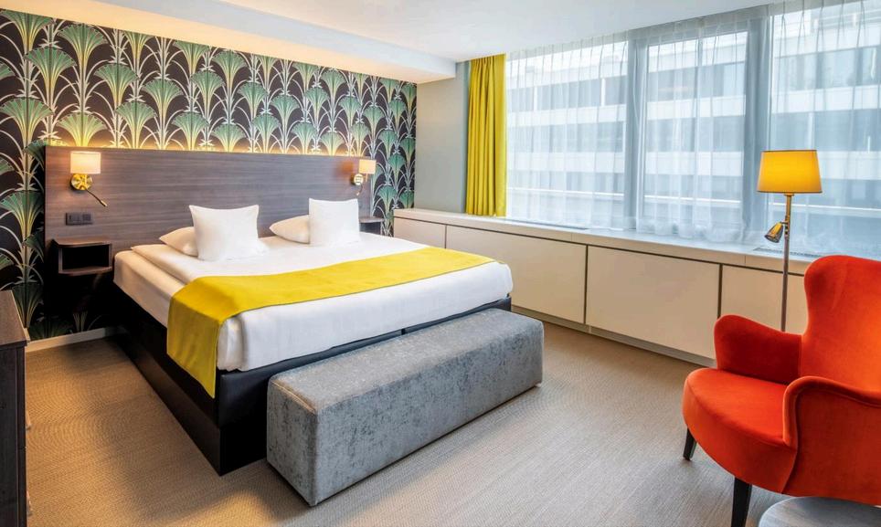 L'hôteldisposede405chambresconfortables,modernesetfonctionnelles conçuesdansdescouleursneutresavecdesdétailslumineux.