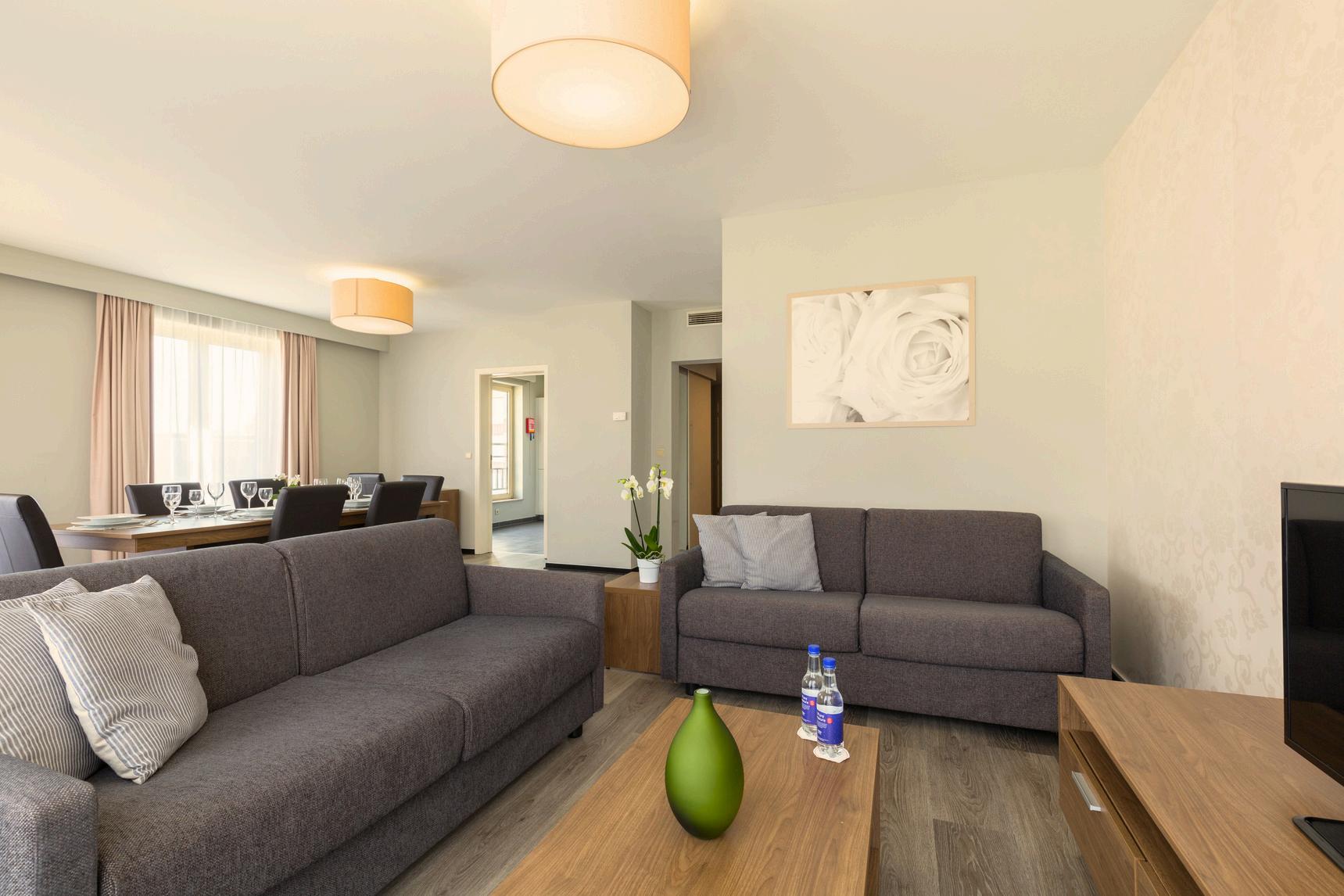 ResidenceParnasseoffersfully-equippedone-,two-, andthree-bedroomapartmentssuitableforshort-or long-termstays.