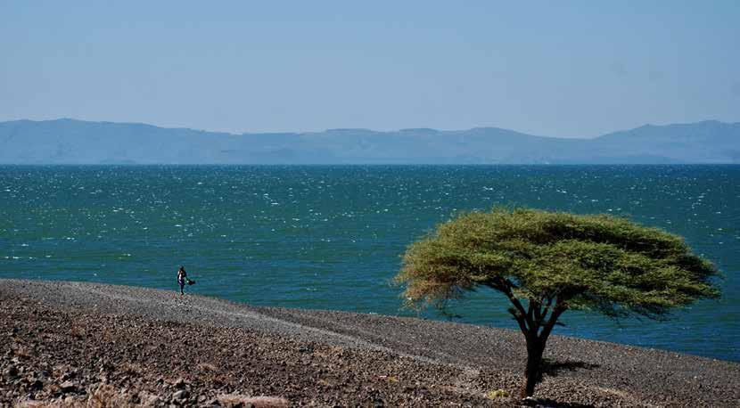 the airstrip at Loiyangalani I watched the Cessna swoop low over the jade-sapphire waters of Lake Turkana, come in to land, and drone to a stop. As my travelling companions alighted, scores of local children raced on to the runway, clapping and shouting. My friends were delighted. They had been with me on treks in several countries, but never received a welcome like this.