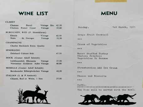 Jonathan Block from Naivasha is the winner of our Historic Photo Contest this issue with two images of the menu card from Treetops Hotel in 1971. He wins a book prize from Old Africa.
