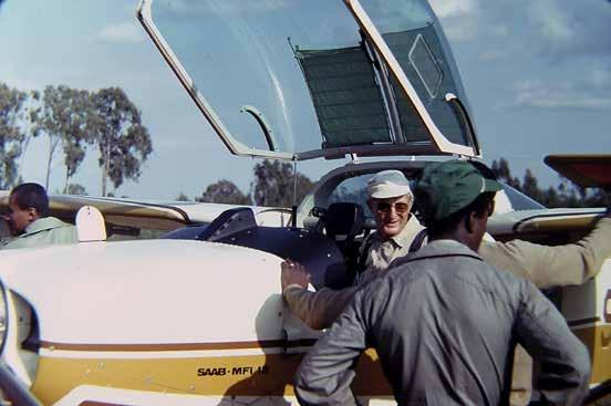 airfield at Bishoftu (also known as Debre Zeit), south of Addis Ababa, was selected as the base. The SAAB 91A was selected as the initial training aircraft, and five of them were ordered. To add credibility to his plan, von Rosen flew a Saab Sapphire (Safir) from Stockholm to Addis Ababa non-stop (a Saab 91A, the three-seater version) in 1947. The fuel quantity for his special plane had to be increased from 175 litres to 947 litres, leaving very little space in the cockpit, and the oil capacity was increased from 8 to 45 litres. In total the take-off weight was increased from 995 kg to 1500 kg! One of the major challenges he faced was to get a permission from the Soviet Union to fly above the eastern bloc territories. With his heavy load, he took off from Stockholm’s Bromma airport on 9 May1947. At sunset he entered the Instrument Meteorological Conditions (IMC) conditions over North Africa, and this was further complicated by a sandstorm that affected the aeroplane compass. After almost ten hours of flying in these conditions he finally landed in Addis Ababa at 11.05 on 10 May, after a total flight of 31 gruelling hours. Von Rosen left Ethiopia in 1956 and returned to Europe and took up a more sedentary role as a KLM pilot. As he left, Emperor Haile Selassie had given him some 200 acres of