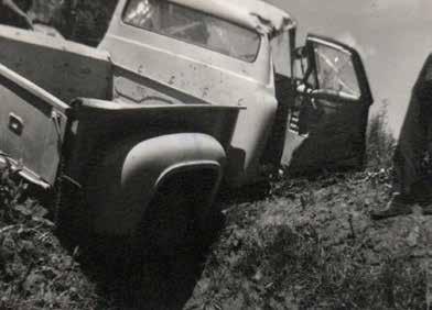 6. A pickup truck which had an accident and narrowly avert dropping over the edge of the escarpment.