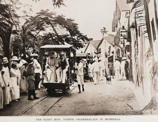 Cover photo: In the early days of the railway in Kenya VIP guests were often given a cushioned seat on the front of the engine. We are uncertain the names of the riders in this photo. The one on the left seems to be a hunter because of the bullets on his shirt. The photo is from Sue Deverell’s collection. Her grandfather, Alfred Gerald Wright Anderson, and his business partner, Rudolf Meyer, bought the Standard Newspaper from AM Jeevanjee in August 1905 and renamed the newspaper the East African Standard. They took many photos to chronicle that era of Kenya’s history, including this photo.
