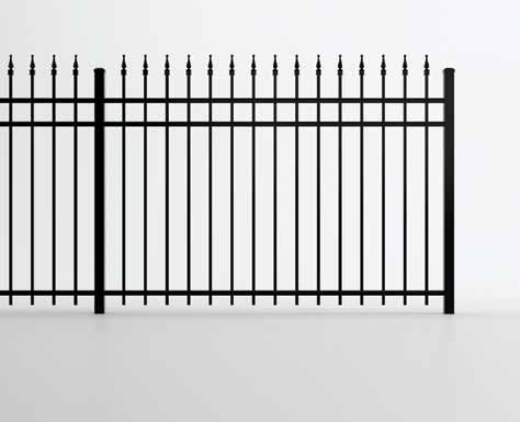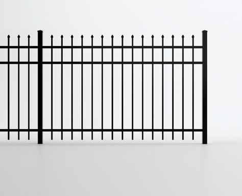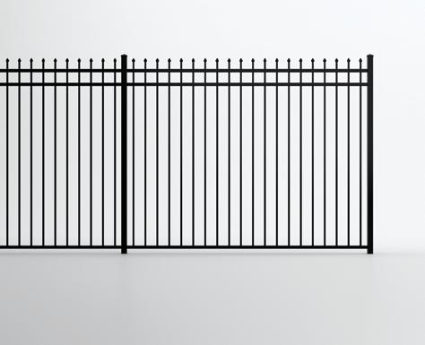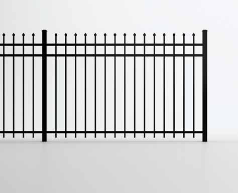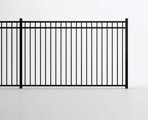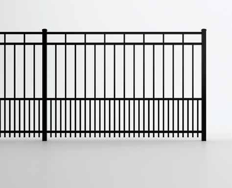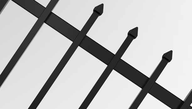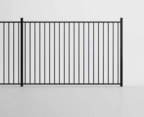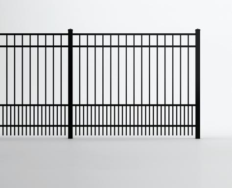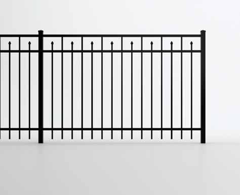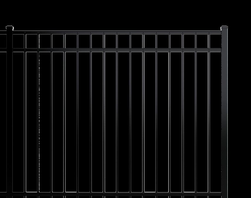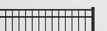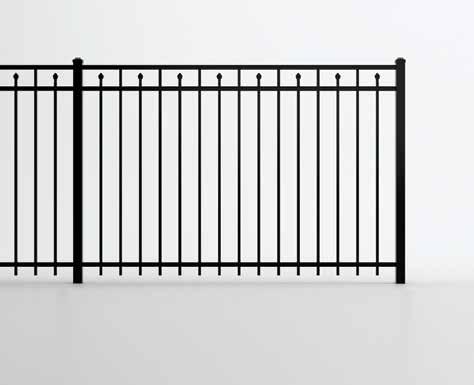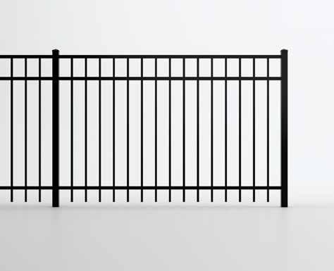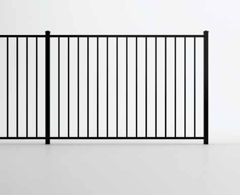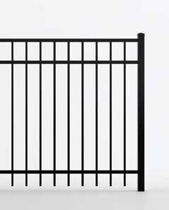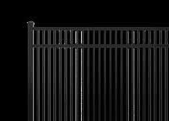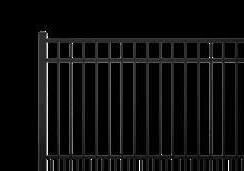 This streamlined picket profile is ideal for enclosing lowto medium-grade properties. The black powder-coated steel won't fade in extreme exposures, making it an ideal choice around chlorinated pools and salt air environments.