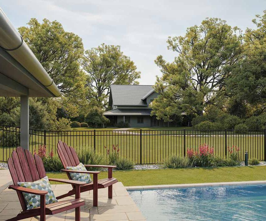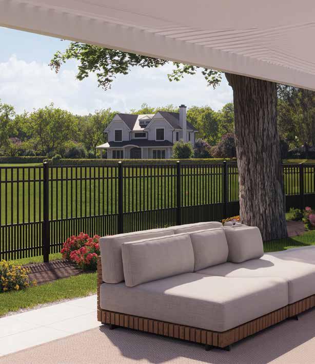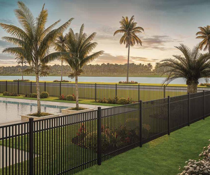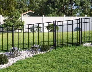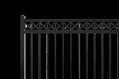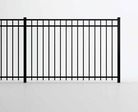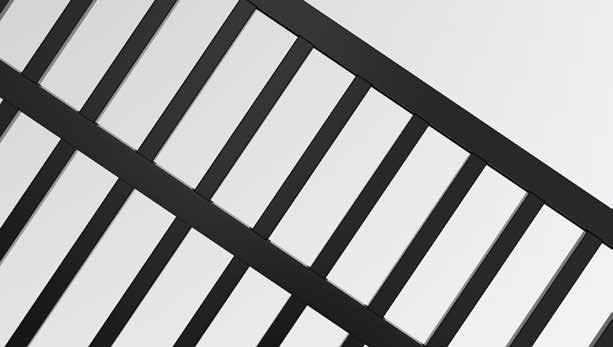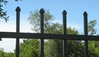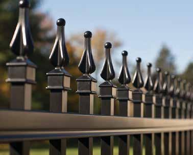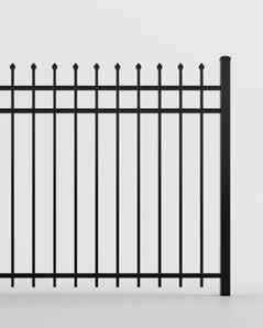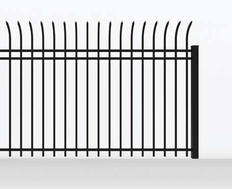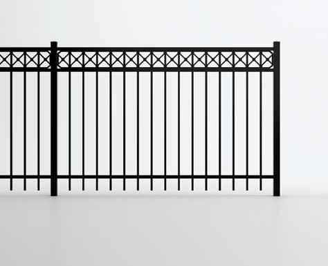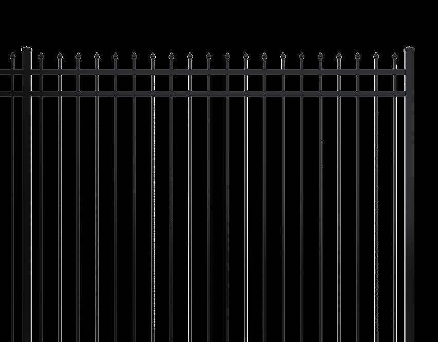 This streamlined picket profile is ideal for enclosing lowto medium-grade properties. The black powder-coated steel won't fade in extreme exposures, making it an ideal choice around chlorinated pools and salt air environments.