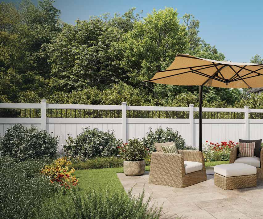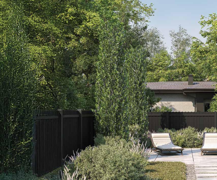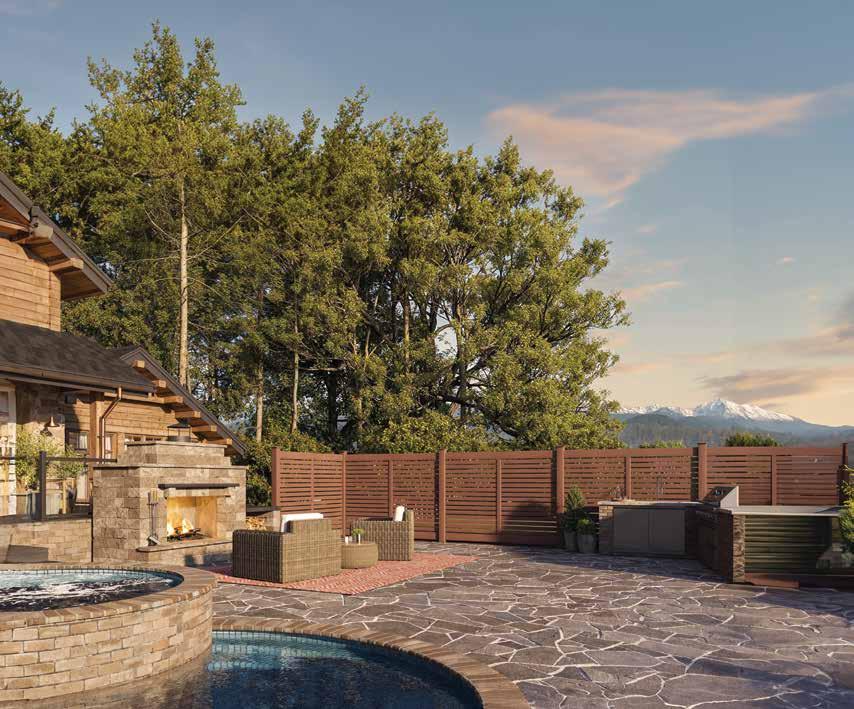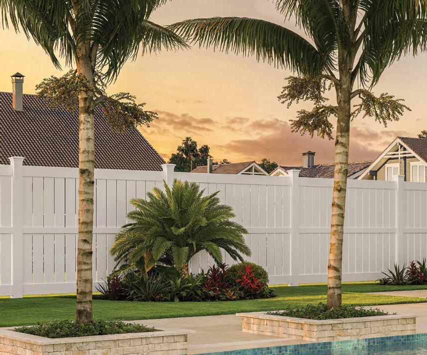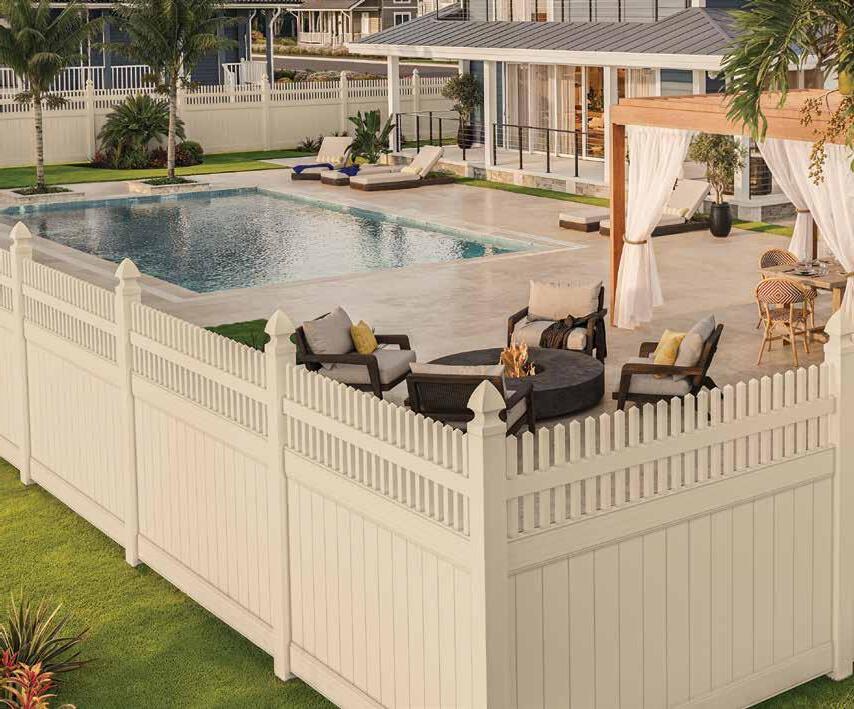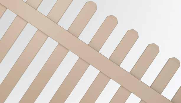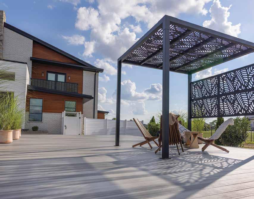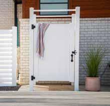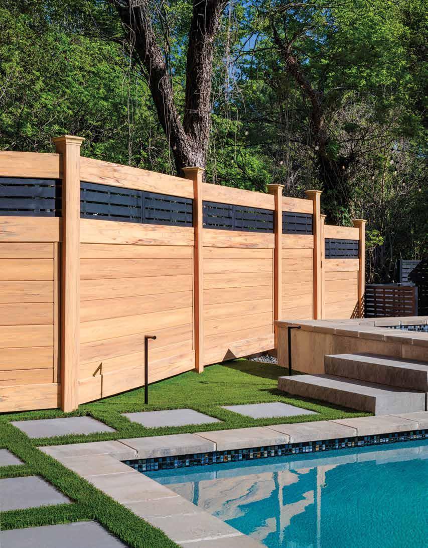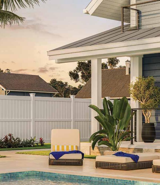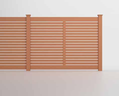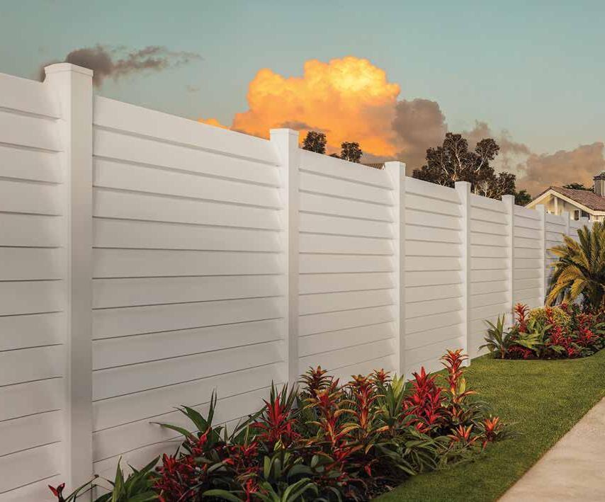Create a secluded outdoor gathering space without blocking the summer breeze. The Seaside horizontal semi-private captures the essence of coastal style with angled slats that provide privacy while allowing filtered light and airflow. See page 44.