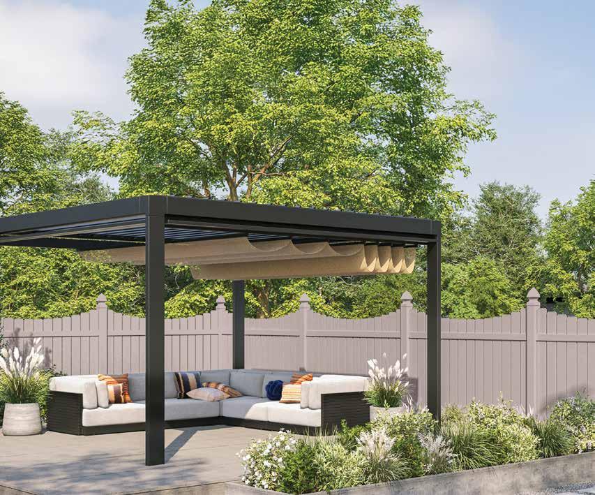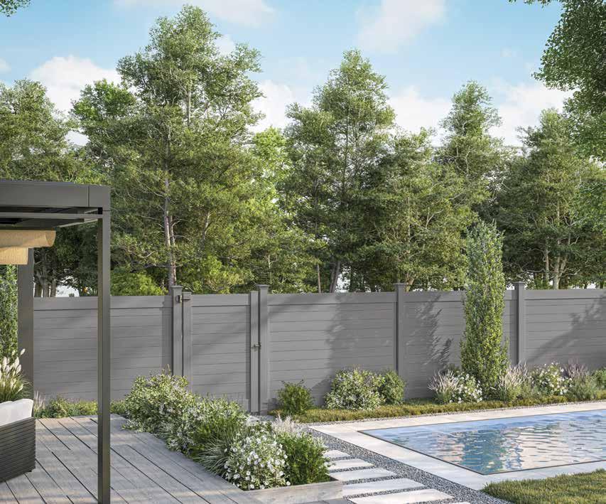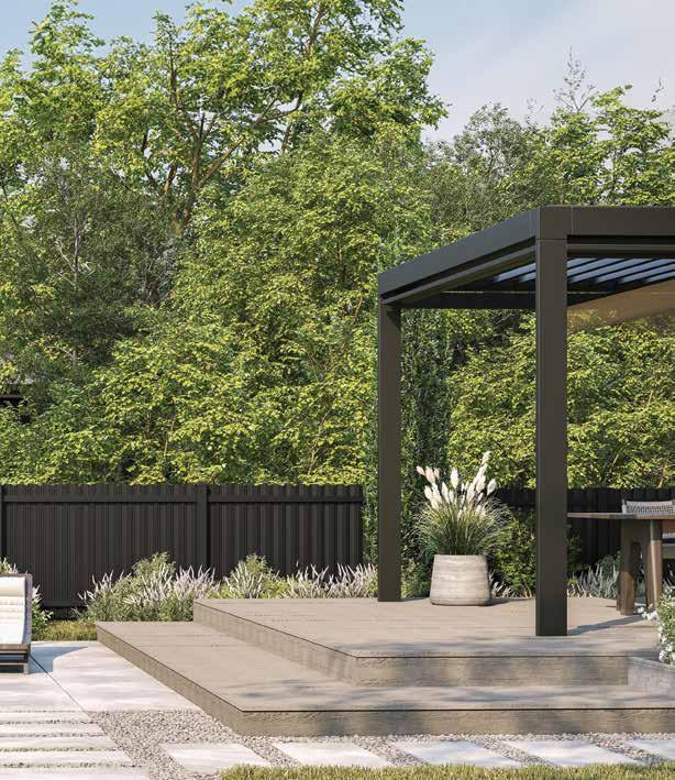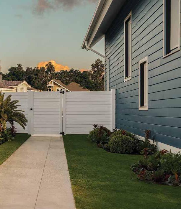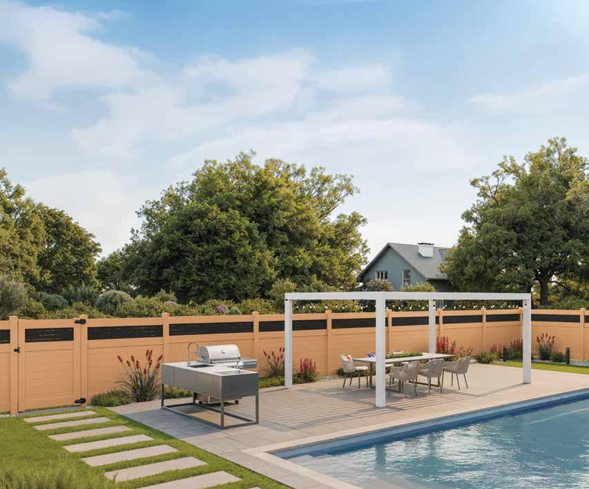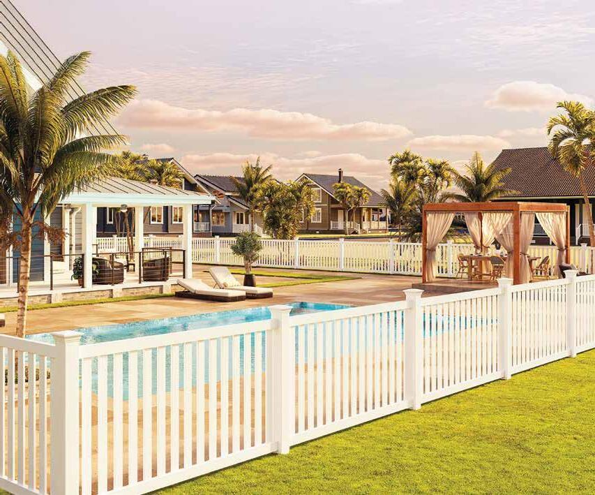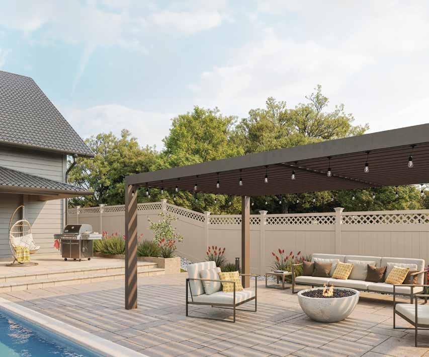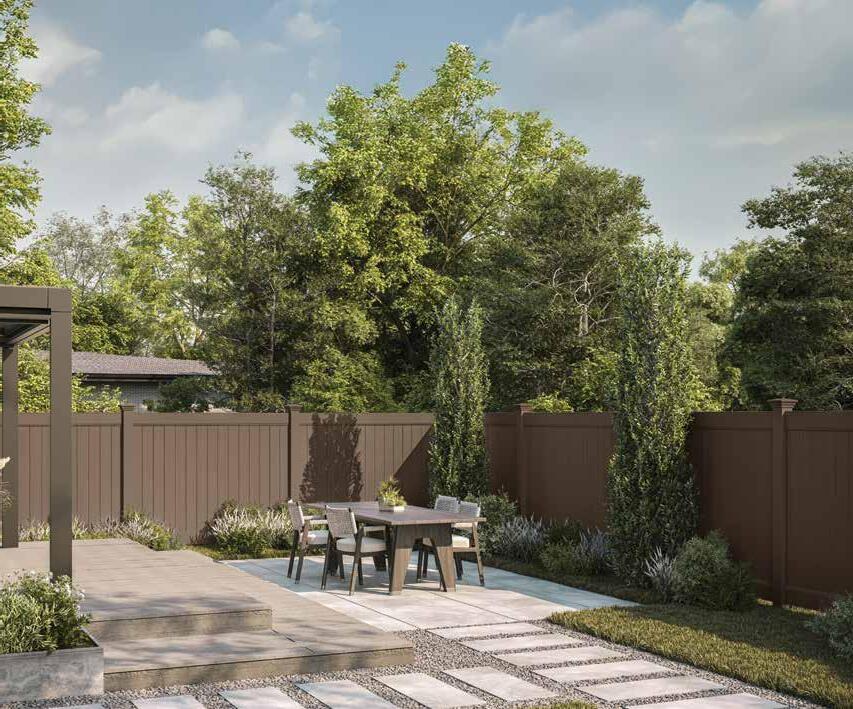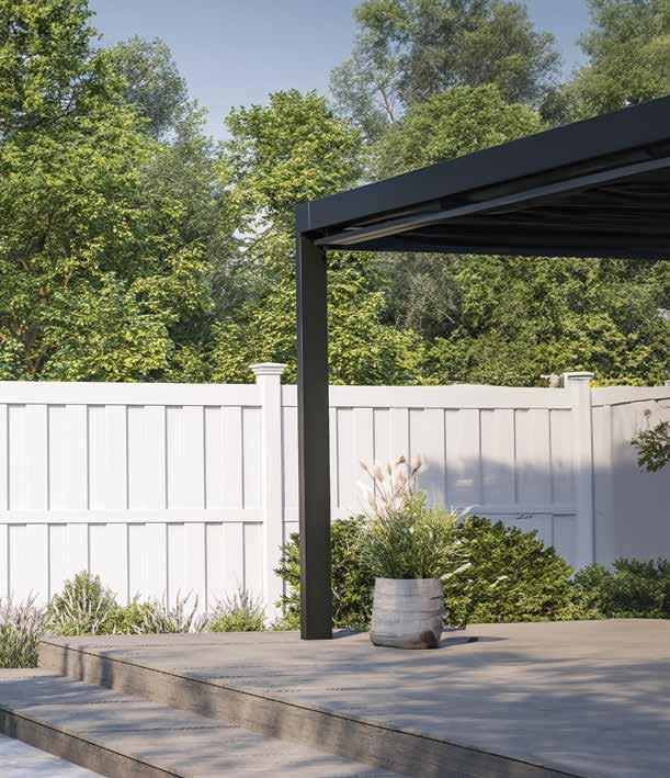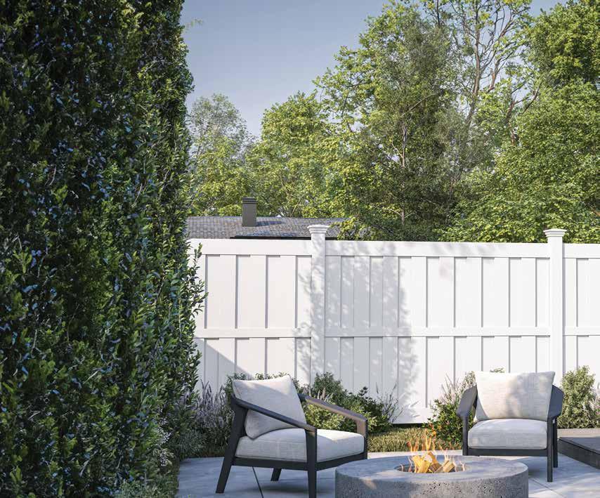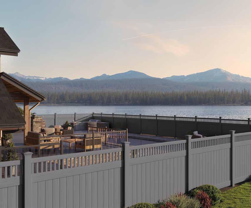 Create a secluded outdoor gathering space without blocking the summer breeze. The Seaside horizontal semi-private captures the essence of coastal style with angled slats that provide privacy while allowing filtered light and airflow. See page 44.