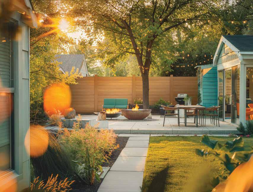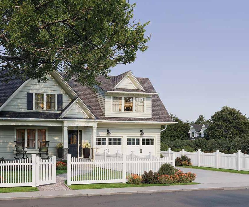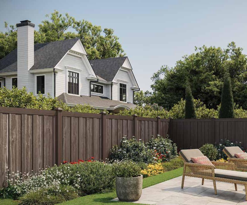 Emphasize the cozy, handcrafted feel of a craftsman-style home with the Riverside mixed material fence. Choose warm wood tones and contrasting dark metal for a classic Pacific Northwest style. See page 72.