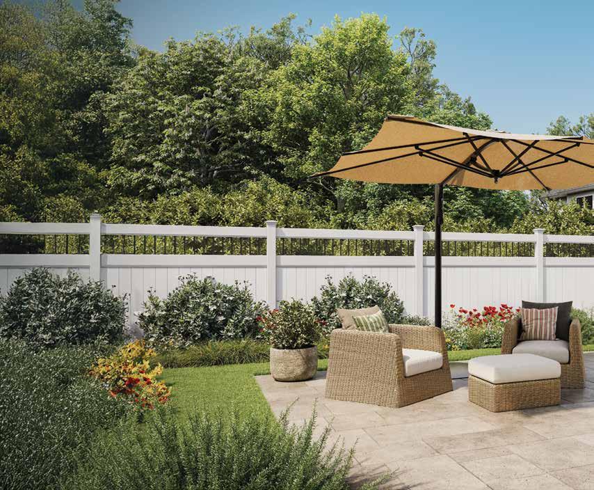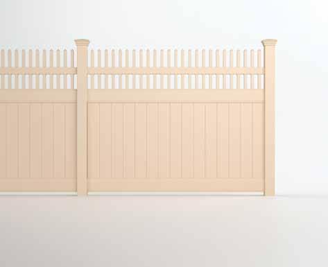 Balance privacy and style with a decorative top that adds dimension and limited visibility at the top of the fence while blocking most sight lines.