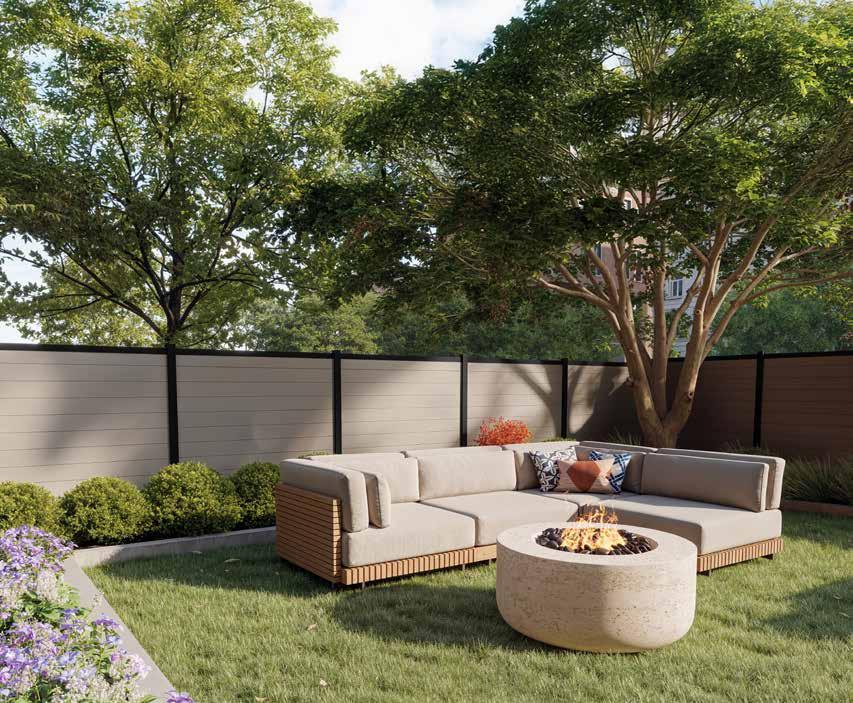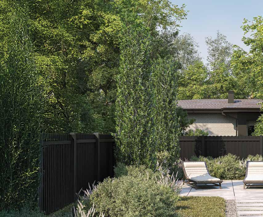 Traditional spaces call for order and charm — picturesque paths, wood accents, and classic forms. Fences like Newbury enhance these settings with clean lines and timeless color tones that complement the architecture, adding structure without overpowering.