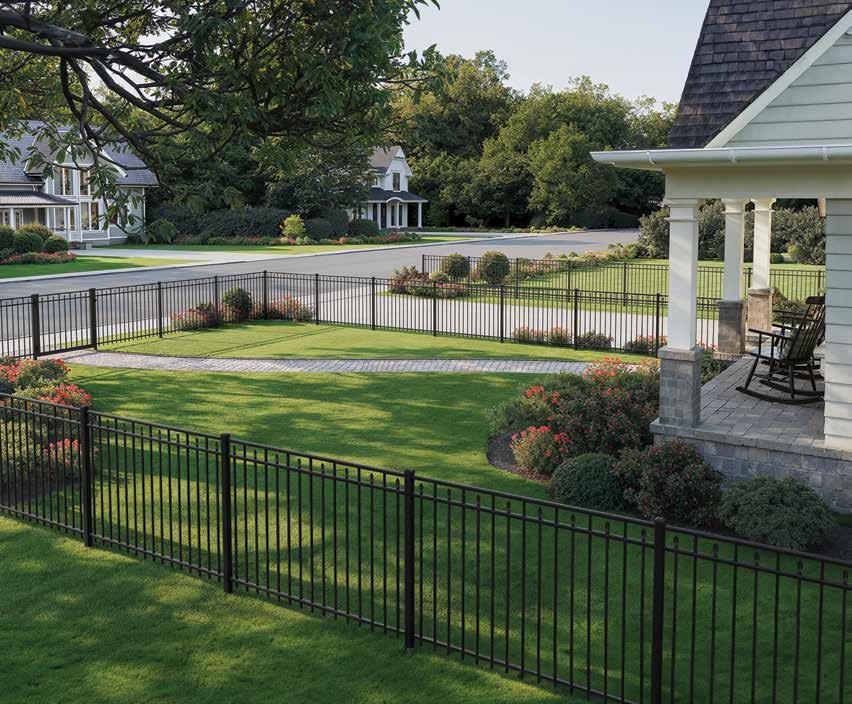 Our stately aluminum profile pays tribute to historic neighborhoods encircling the nation's capital, with 48" — spaced pickets and an optional add-on panel so pet owners have peace of mind.