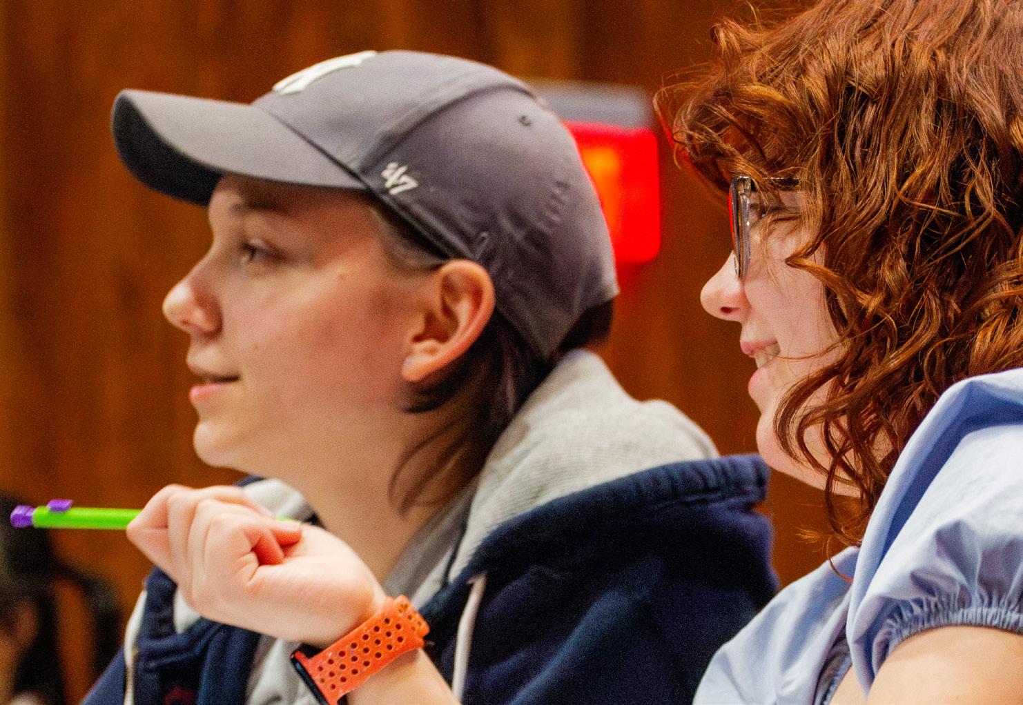 At the start of her presidency, Gerace encouraged each choreographer to come prepared with facts about the music they decided on. With a quick shout, Velazquez gets the group’s attention. All eyes are on her as she shares why she chose “Breakin’ Dishes.”