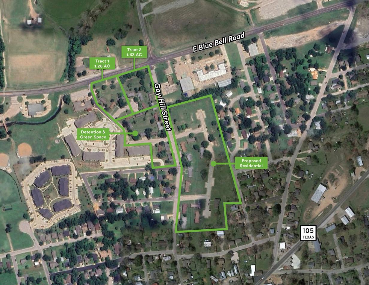In keeping with its mandate to provide housing in the Brenham area, Brenham Housing Authority Is seeking proposals to purchase and redevelop these 15 acres of property at the corner of Bluebell and Gayhill St. in Brenham, TX. We are in the process of demolishing 19 duplexes and slabs on the West side of Gayhill St. There will then remain only 11 duplexes to abate/demolish on the East side of Gayhill St. The property has fully developed streets and utilities. The proposal should include price to purchase and/or lease land, or part of the land, with the Developer responsible for the demolition and asbestos abatement of all 11 duplexes should they purchase that portion, as well as a preliminary use plan for the property. The 15 acres could be divided (currently has not be replatted) into three sections which can be purchased separately or all together (see attached Map).