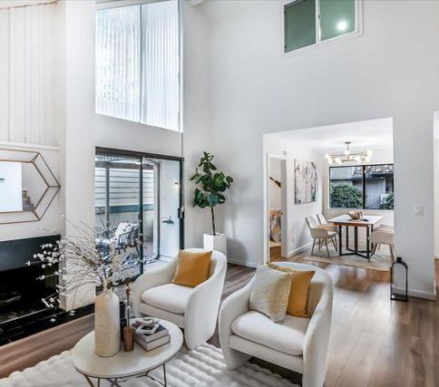 Please note that this is a townhouse-style single-family home In the title report, it is listed as Fee, so you dont have to worry about the Balcony Law SB326 messing up your loan process. This is an unbeatable dealan independent home with an affordable price, top-rated schools, and unbeatable transportation access. What are you waiting for? Inside, the high ceilings make the space feel open and bright. This 1,330 sq. ft. home features 2 bedrooms and 2 bathrooms, offering both comfort and functionality. Additionally, it includes an office area and a small loft, expanded the usable space. The two-car garage, plus extra parking space in front, ensures a hassle-free parking experience. With parks, supermarkets, schools, and major company shuttle stops all within walking distance, convenience is at your doorstep Join us for the Open House this weekend we look forward to seeing you!