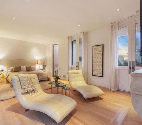 The multi-level layout offers two private bedroom suites each with en-suite bath, balcony, and captivating views of the Bay and city skyline plus an office and upper-level loggia designed for sunset moments and intimate gatherings.