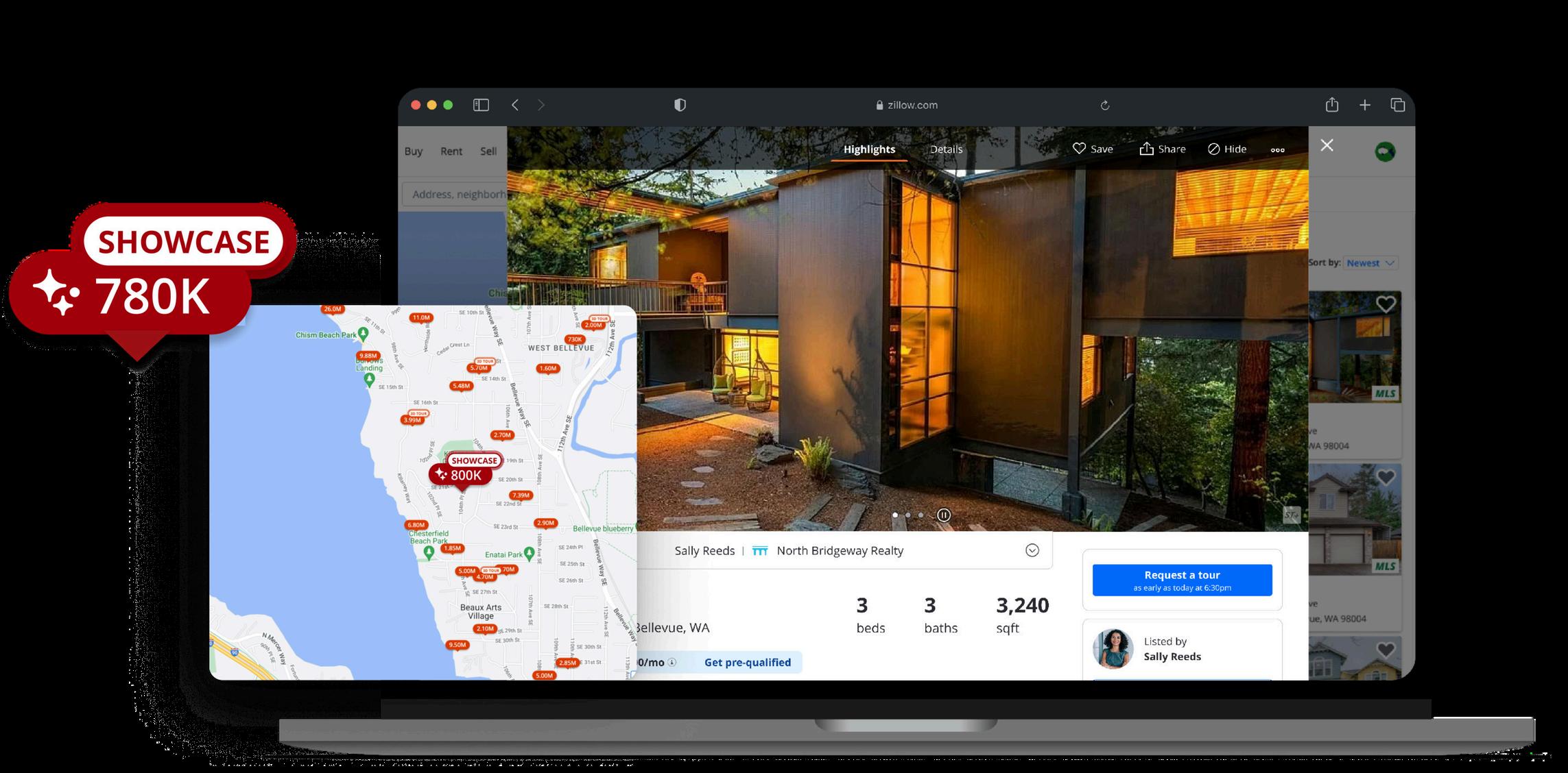 Showcase is a premium listing experience on Zillow that offers your home powerful marketing exposure with dedicated emails to interested buyers and prioritized placement in search results. The elevated, media-forward design features a virtual tour and an interactive floor plan, helping buyers engage with your listing