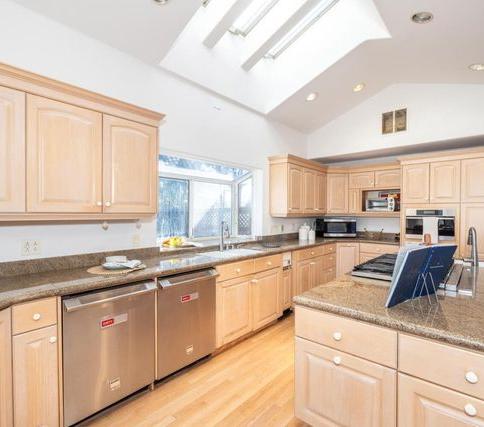 Welcome to this stunning, newly remodeled 6-bedroom, 65-bathroom home located in the desirable city of Hillsborough This expansive residence boasts 6,690 sq ft of luxurious living space on a generous 36,920 sq ft lot The gourmet kitchen is a chef's dream, featuring a gas cooktop, island with sink, quartz countertops, multiple wine refrigerators, freezer, and additional high-end appliances, including multiple dishwashers and oven range. Entertain guests in the formal dining room or the cozy breakfast nook with family room combo. The home features elegant brand new wood flooring throughout and includes amenities such as walk-in closets, vaulted entry, bay windows, built-in vacuum, high ceiling, security gate, and skylight. Enjoy the warmth of the fireplace on cooler evenings. The primary bedrooms offer a retreat with walk-in closets, oversized tubs, and steam shower. Convenience is enhanced with a ground floor bedroom and full bath, plus laundry facilities located on the upper floor. The home is equipped with central AC and heating for year-round comfort. Located within the