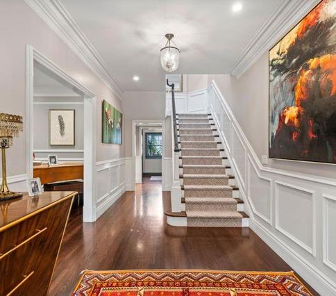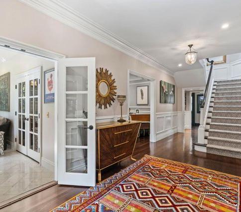 Iconic 1920's dutch colonial-style home located on one of hillsborough's most coveted streets. This elegant home has been thoughtfully remodeled with top-of-the-line materials and finishes. This 6800+sf estate offers 6 bedrooms 5 full and 2 half baths, an au pair suite, and a spacious layout. Abundant natural light captivates the inviting ambiance showcasing the amazing detail throughout the property. The formal dining room features elegant floral wallpaper and wainscoating. The family room, media room and gym provide ample space for entertainment and relaxation. Outside you will find a built-in bbq, firepit, and sports court, perfect for outdoor activites and family fun! The spacious floorplan features 5 bedrooms upstairs, with a generious sized primary suite This home also offers a private office with 1/2 bath This home is conveniently located within a short distance to burlingame ave and top rated north elementary and crocker middle school