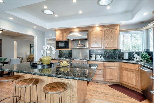 This stunning home is nestled in a private, lush courtyard on a large corner lot. A magical setting ideal for entertaining or relaxing in your own private oasis enjoying the abundance of flowers, plants, fruit trees and large Mulberry tree dressed in lights. Upon entering the home you are welcomed with a large living room overlooking the courtyard. Living room features a custom marble fireplace, hardwood floors, recessed lights that flow throughout the home. A formal dining room leads to gourmet kitchen with a Thermador Professional grade stove. Extra large granite island, granite counter tops, custom cabinets and SS appliances. Kitchen open to family room with vaulted ceilings! Laundry room and large pantry adjacent to family room includes Electrolux front load washer/dryer Three large bedrooms include a private en suite primary bedroom with walk in closet and bath Lush back yard has a full outdoor kitchen Steps from the bay trail and close to all San Mateo has to offer!