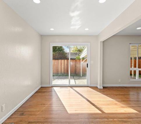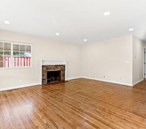 Beautifully updated single-story home with four spacious bedrooms and two full bathrooms, designed for comfort and functionality The inviting open living room features a cozy fireplace and flows seamlessly into the dining area and kitchen, which offers ample cabinetry and workspace ideal for daily living and entertaining Just off the dining room, a versatile flex space can serve as a family room, home office, playroom, or studio The smart layout separates the bedrooms into two pairs, each with a nearby bathroom for added privacy. Stylish new luxury vinyl plank (LVP) flooring adds modern flair and durability. Centrally located, this home provides easy access to shopping, dining, and everyday essentials. You'll love being near favorites like Sprouts, Ross, HomeGoods, In-N-Out, Raising Canes, and Starbucks. For commuters, the proximity to BART, major airports, and public transit makes traveling to San Francisco, Oakland, and beyond a breeze. Designed with modern living in mind and offering ample opportunity to personalize, this home is a rare gem ready to become your perfect
