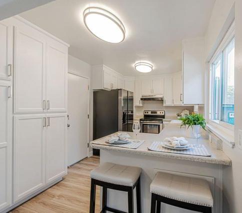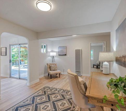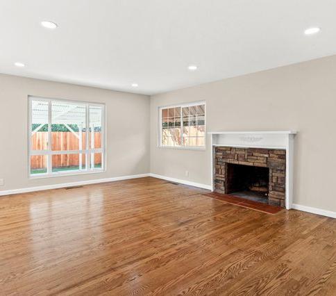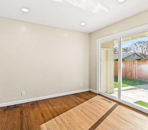 Welcome to this delightful single-level home, bursting with modern upgrades. This beautifully updated property features 4 bedrooms and 2 bathrooms, with refinished hardwood floors throughout, recessed lighting, fresh paint inside and out, double-pane windows, and new hardware and fixtures. The newly remodeled kitchen includes a quartz countertop, plenty of cabinet space, new flooring, and stainless steel appliances. Both bathrooms have been updated with tile enclosures and vanities with quartz top. The dining area opens to a spacious living room with a fireplace, perfect for large families. The two-car garage and recently poured driveway can accommodate 4 additional vehicles. The lowmaintenance backyard features artificial grass and a patio, ideal for summer barbecues Located in a friendly neighborhood close to freeway access, stores, schools, and dining options Owner will consider financing the loan