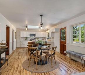 Located in the lush rolling green hills of Sebastopol's celebrated countryside is this beautifully appointed 3+ bedroom, 2.5 bathroom farmhouse, complete with a second 685 +/- 1+ bedroom unit, all sited on a level 1.27 acre parcel graced with a variety of happy fruit trees. Rich newly refinished hardwood flooring, two warm and cozy fireplaces, a chef's gourmet kitchen complete with new quartz slab countertops and new stainless appliances, two newly refreshed tiled bathrooms with attractive vanities, new designer lighting and plumbing fixtures, and custom handcrafted wainscotting all elevate the appeal of this much loved home A master suite and two additional ample-sized bedrooms boast soaring ceilings and lots of sunlit glass There are solid wood paneled doors throughout, new carpet, new interior and exterior paint, and a new redwood deck too The detached stylish 1+ bedroom second unit, complete with wood vaulted ceilings, skylights, an attractive kitchen with stainless appliances and its very own private deck overlooking a sun kissed meadow won't disappoint. This little slice of
