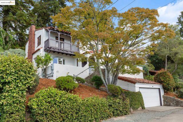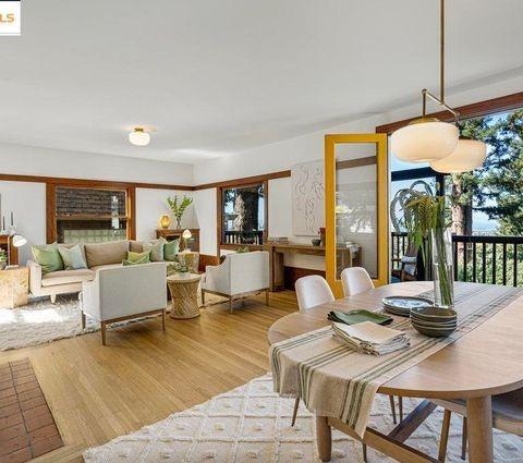 Beautifully updated, this 3-bedroom, 2-bath Cragmont home offers 1,784 sq ft of refined living and stunning Bay views. From the front porch, enjoy sweeping vistas of the Golden Gate Bridge, Angel Island, and the San Francisco skyline. Inside, natural light fills the living room with its classic fireplace and new floors. The open kitchen features stainless steel appliances, a gas range, bar seating, a breakfast nook, and a dining area all oriented toward the iconic views Two main-level bedrooms include one with Golden Gate views and dual closets, plus a serene garden-facing room The refreshed hall bath adds modern style Upstairs, the primary suite provides a peaceful retreat with skyline views, a walk-in closet, and an updated en suite bath Just steps above, a bonus room captures unmatched bridge views perfect for an office or guest area The terraced backyard offers multiple outdoor spaces, complemented by a tandem garage, off-street parking, and a landscaped front yard. A rare find, this home delivers exceptional Bay panoramas in one of Berkeley’s most sought-after