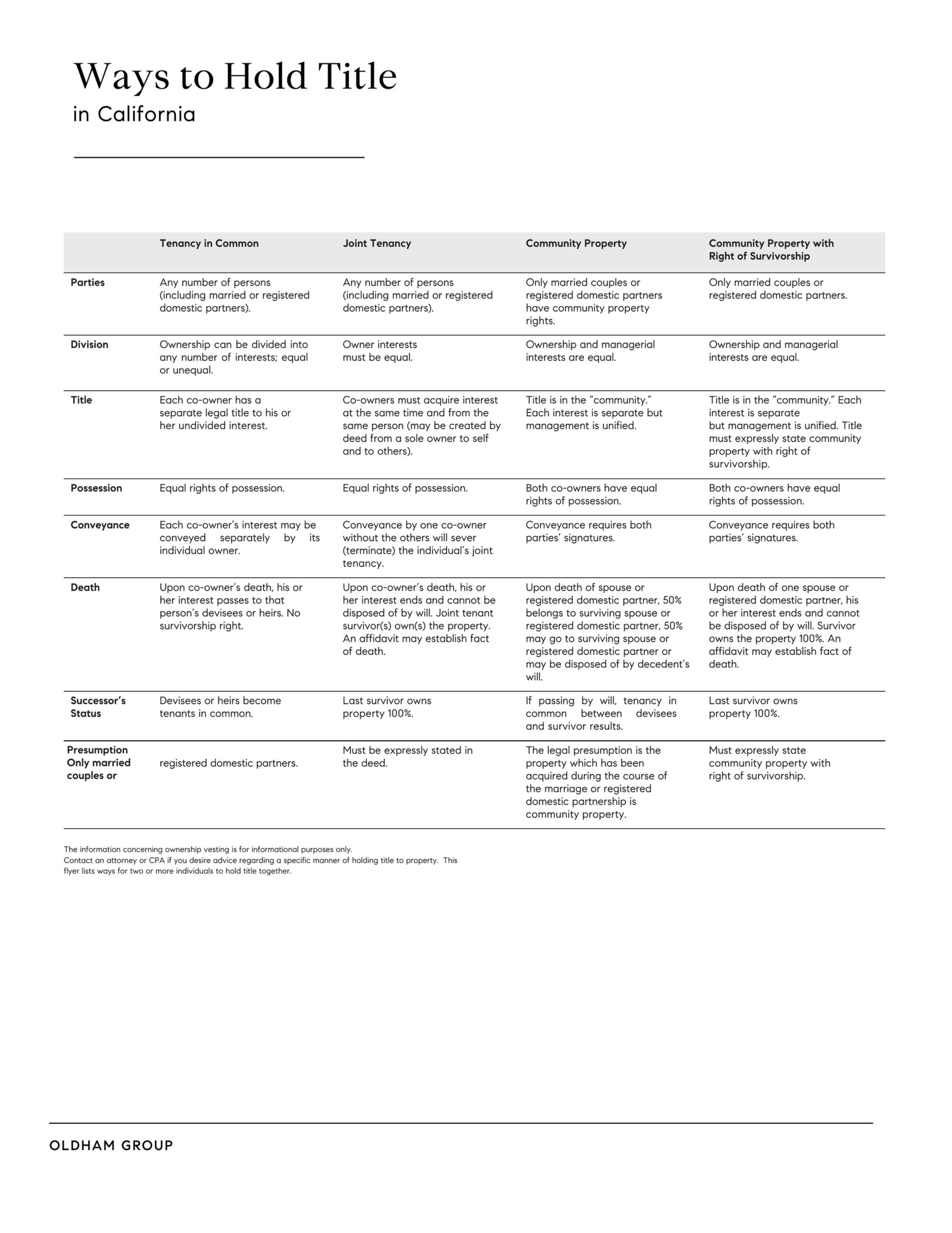 WAYS TO HOLD TITLE IN CALIFORNIA