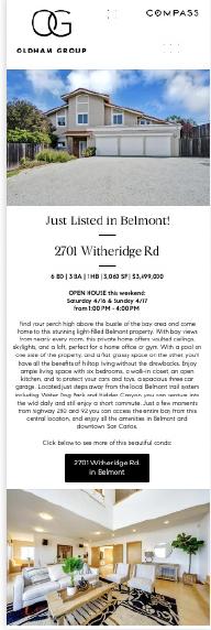 NEWSLETTERS - We will target the listing area through email campaigns These emails are sent for each status change on your listing and are full of information for potential buyers. When sending these emails, we create a list of potential leads in the area through a mix of home buyers in our team database as well as local homeowner leads from a third party real estate farming tool.